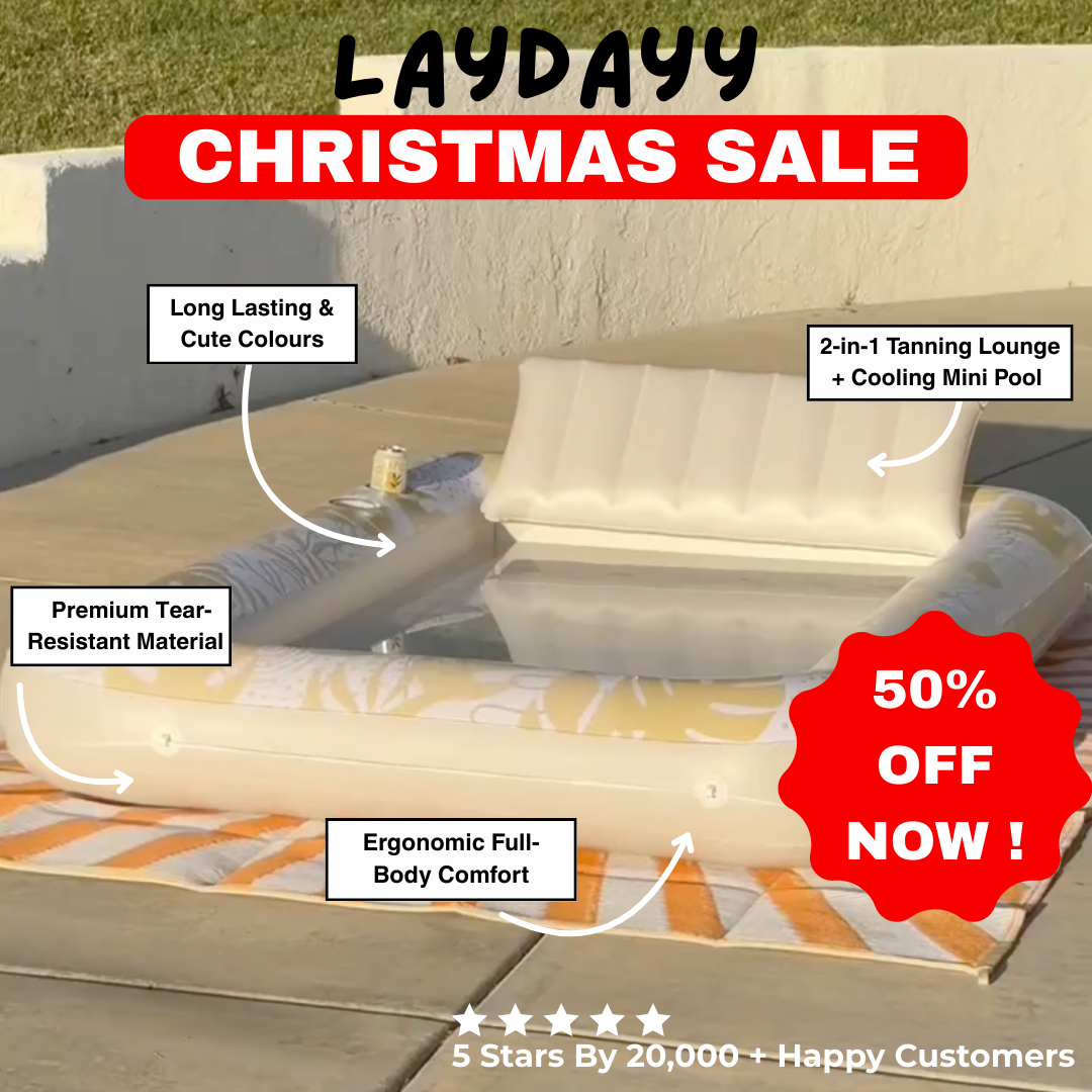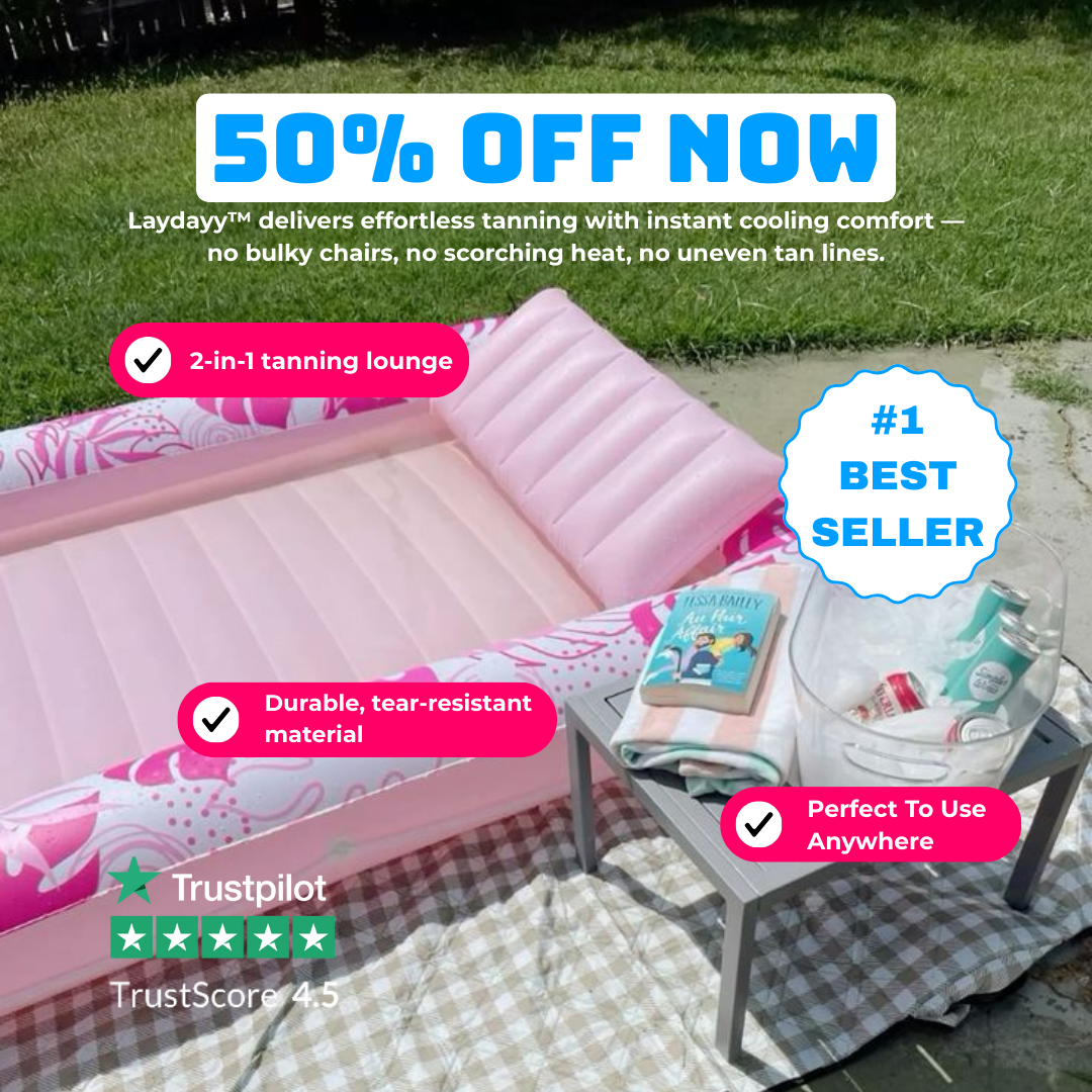 Laydayy™ makes tanning simple. The cooling water-base keeps you refreshed, while the cushioned support and built-in pillow let you relax in total comfort. No overheating, no hard surfaces — just smooth, effortless summer lounging anywhere you go.